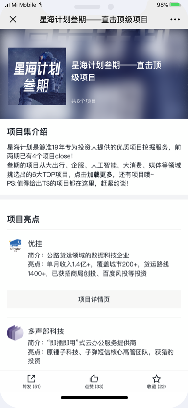 鲸准对接平台作为全方位的投融资信息对接平台,为投资人提供动态行研分析与优质创业项目的发现和追踪,希望鲸准越来越好!